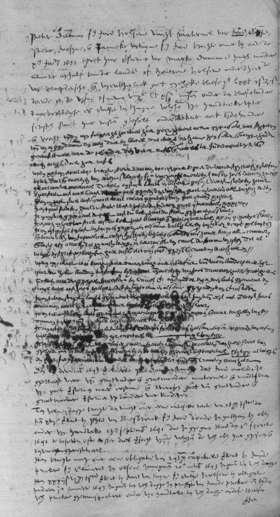Pieter Daman fs. Joos Holsene voogt maternel van Joos, Pieter, Joosyne, & Jannekin v[a]ntuyne fii. Joos braght over by eede de xii Ja[nua]ry 1633 tgoet [?] van Maykin Daman 3 huers moedere al[…] es half bunder landts of [daeromtrent in] Holsene onder d[…]